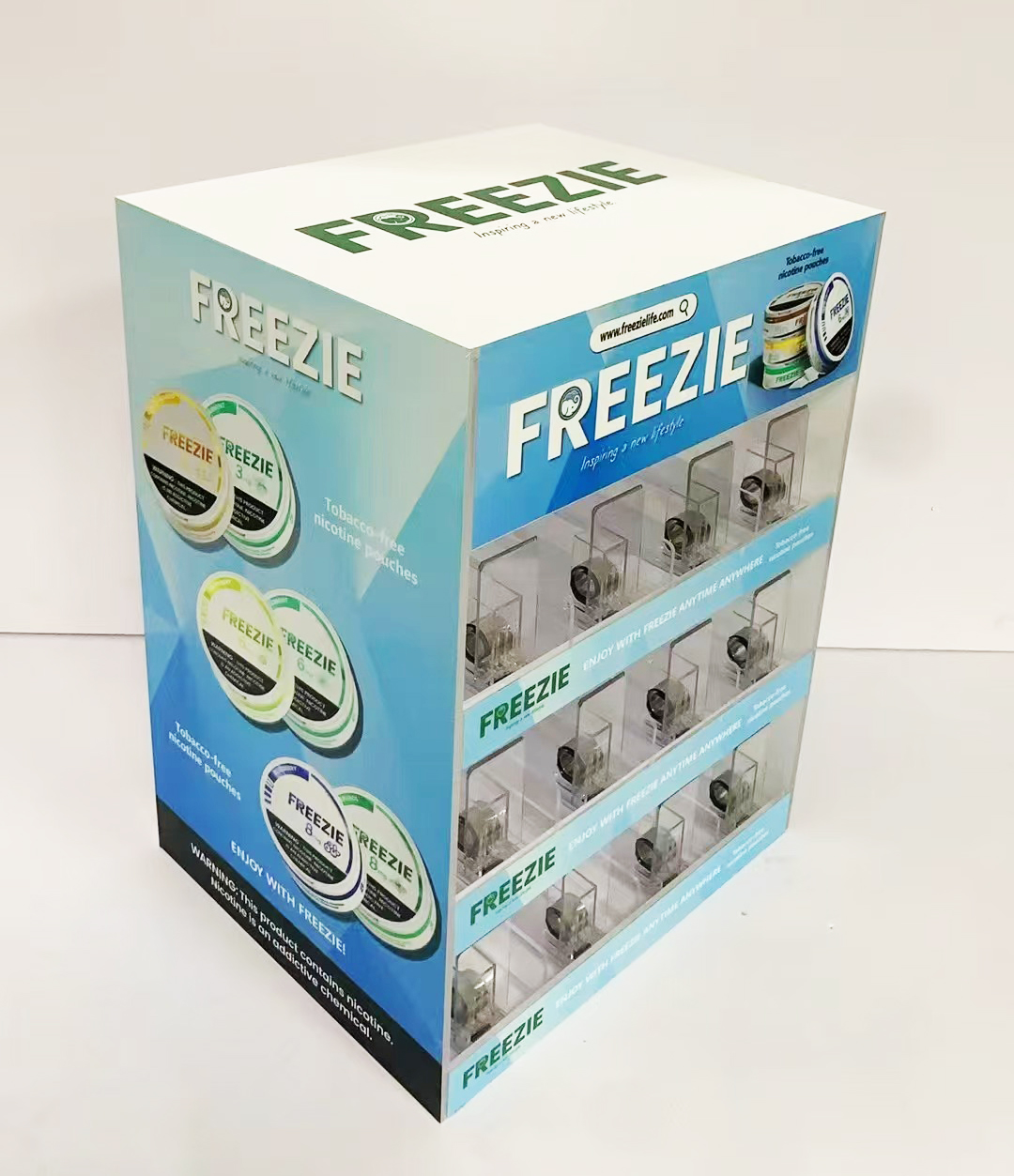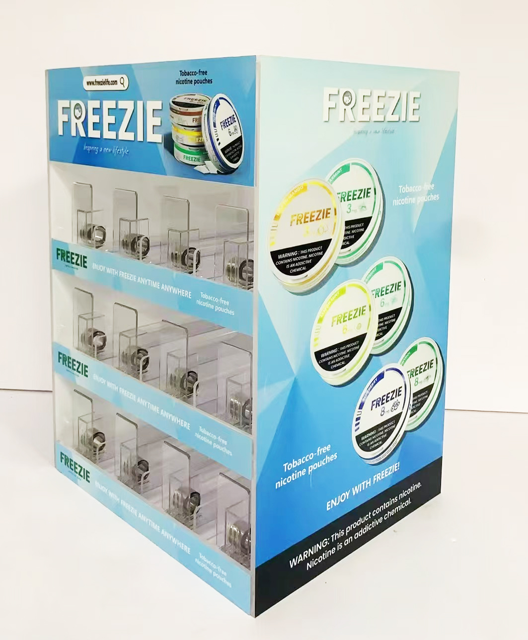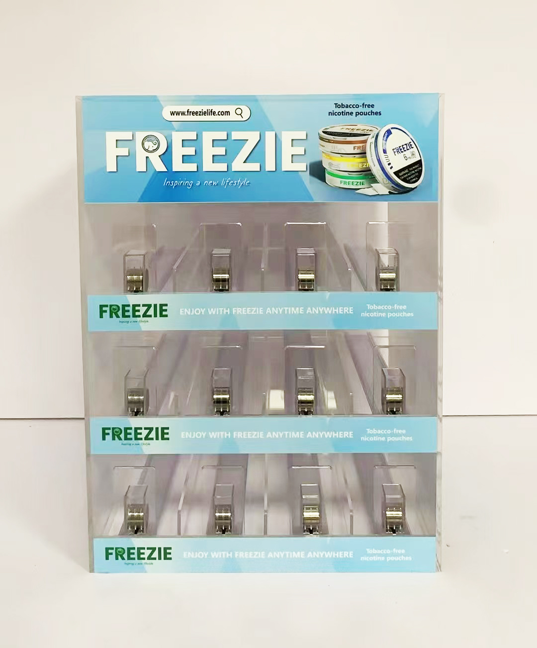 Freezie Nicotine Pouch Acrylic Display with Pusher System