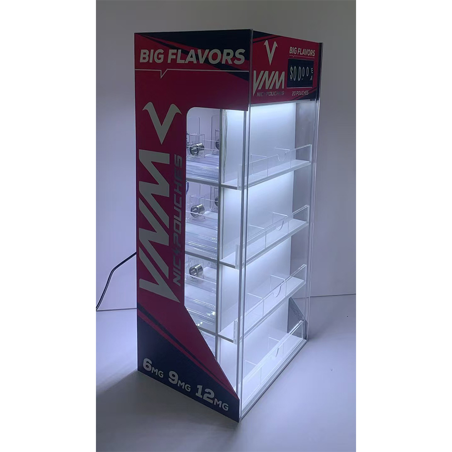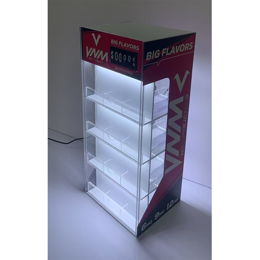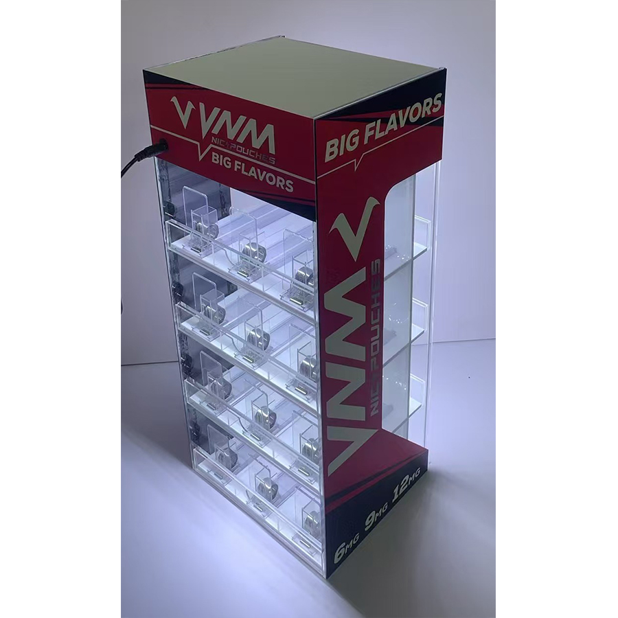 VNM Nicotine Pouches Acrylic Display Stand with Pursher System and LED